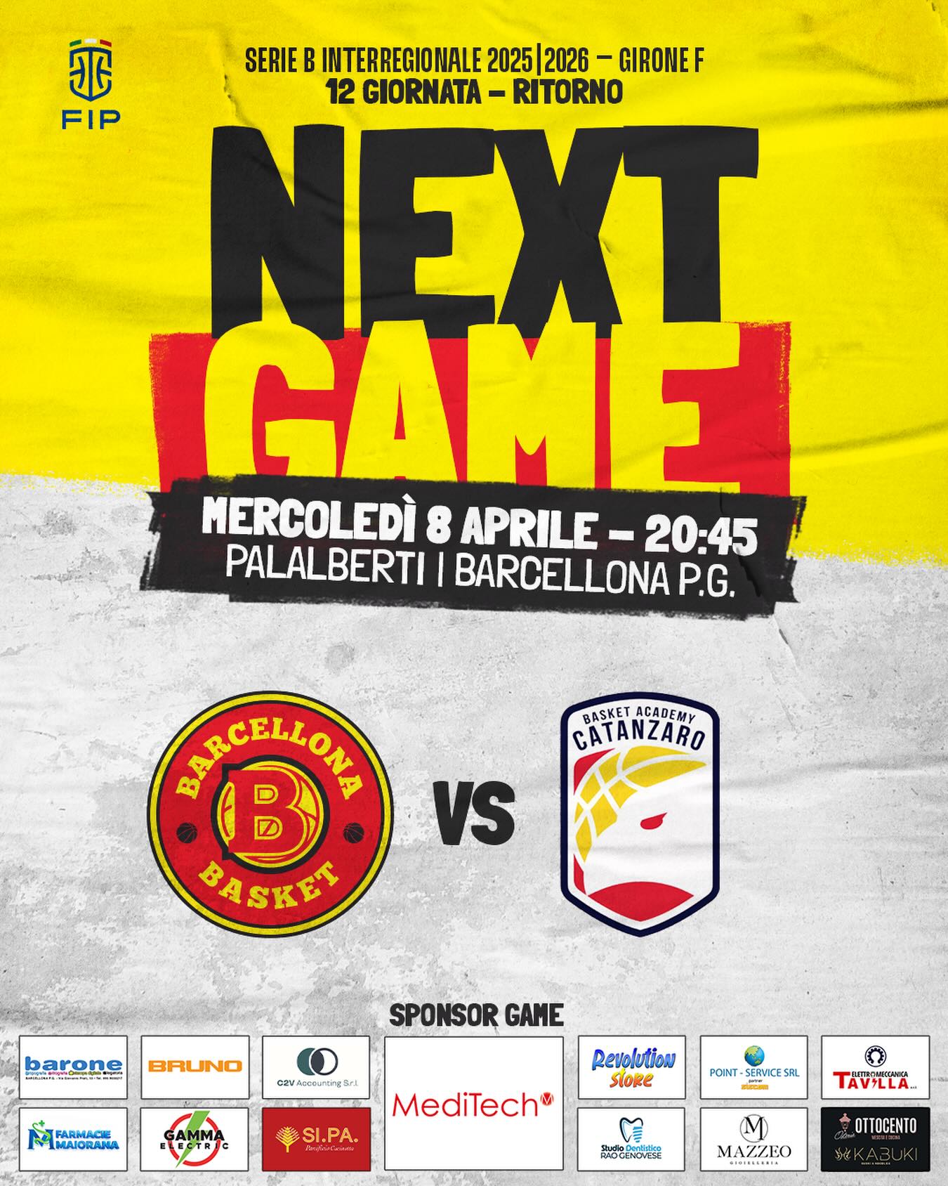 Basket Serie B Interregionale maschile Girone I , riprende il campionato con il turno infrasettimanale (4/9 Aprile 2026 ) in programma anche : Bk4.0 Barcellona – Basket Academy Catanzaro ( barcellonesi in corsa per i play off , ricevano la squadra calabra reduce da una pesante vittoria sulla Virtus Molfetta ), e il derby peloriano ( Svincolati Milazzo – Basket School Messina)