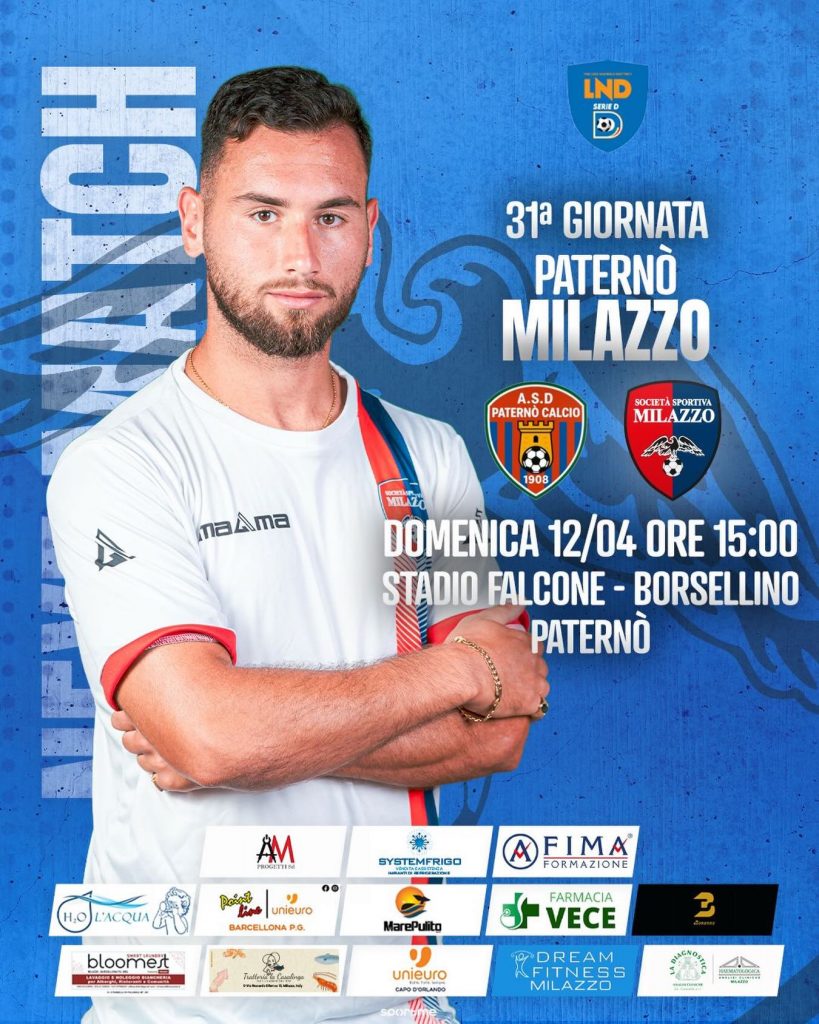 Per il Paternò è all’ultima spiaggia. 𝗧𝗥𝗔𝗦𝗙𝗘𝗥𝗧𝗔 𝗩𝗜𝗘𝗧𝗔𝗧𝗔 𝗣𝗘𝗥 𝗣𝗔𝗧𝗘𝗥𝗡𝗢’-𝗠𝗜𝗟𝗔𝗭𝗭𝗢 – come da comunicato della SS Milazzo -, “su disposizione della Prefettura di Catania, la vendita dei tagliandi per la gara contro il Paternò non sarà consentita ai residenti in provincia di Messina. La società, pertanto, invita i tifosi a non raggiungere il Falcone-Borsellino nella giornata di domenica 12 aprile 2026”