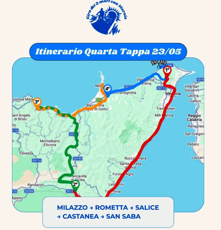 Il percorso si estende quest’anno fino a Patti, per poi risalire verso la zona tirrenica.