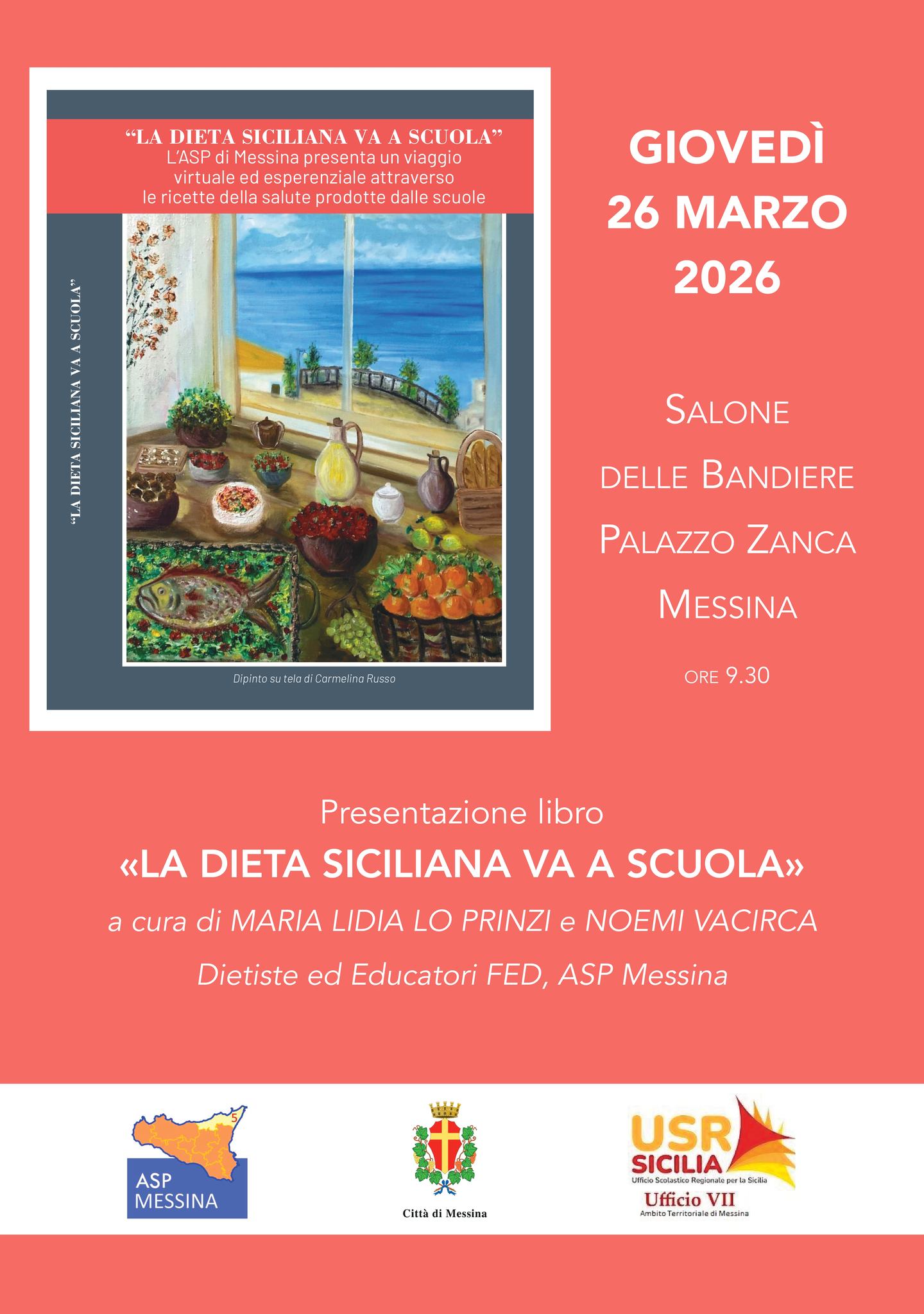 MESSINA – La tradizione gastronomica dell’isola sale in cattedra per insegnare il benessere. Giovedì 26 marzo 2026, alle ore 9:30, presso la sala “Salina delle Bandiere” di Palazzo Zanca, l’Azienda Sanitaria Provinciale di Messina presenterà ufficialmente il volume dal titolo «LA DIETA SICILIANA VA A SCUOLA».