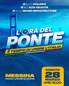 Il countdown per la mobilitazione pro-Ponte è ufficialmente iniziato. Sabato 28 marzo, Messina ospiterà la manifestazione organizzata da Rete Civica per le Infrastrutture, un evento che punta a dare voce a quella parte di cittadinanza e società civile che vede nel collegamento stabile l’unica via per spezzare l’isolamento della Sicilia.