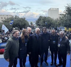 Nonostante le basse temperature e le nuvole minacciose, una folla composta incomincia a radunarsi sabato pomeriggio in piazza Unione Europea a Messina. Bandiere e slogan tutte consacrate alla manifestazione organizzata dal senatore Nino Germanà per confermare la volontà di un sì che costruisce, unisce e abbatte le barriere strumentali dello sviluppo.
