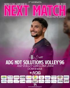 Partita di cartello alla  Palestra “E. Zappia”  Ex Tukery  – Domenica 8 Marzo Ore 18:30 , l’ ASD Volley ’96 Milazzo (Adg Ndt Solutions) ospita la capolista ASD Volley Gibellina 2004 , gara valevole per la 17^giornata di ritorno del campionato di Serie C maschile (girone A).
