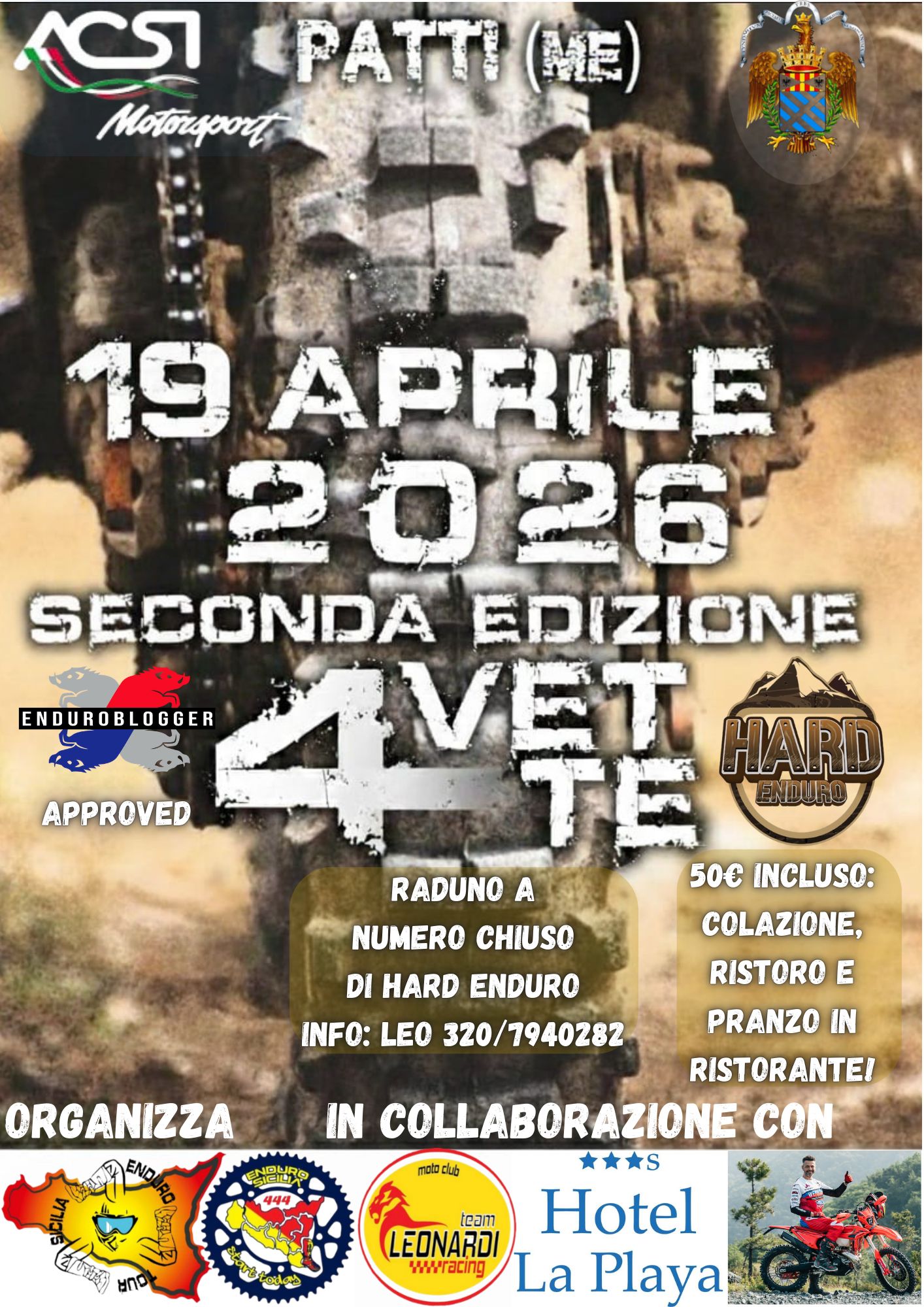Si sono aperte le preiscrizioni alla seconda edizione de Quattro Vette Hard Enduro. Per evitare file nei vari passaggi l’evento sarà a numero chiuso è per piloti esperti.   Special guest dell’evento Angelo Enduroblogger Appunt<amento il prossimo  il 19 Aprile a Patti (Me) città dell’enduro!