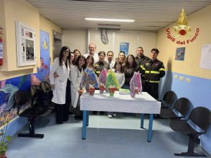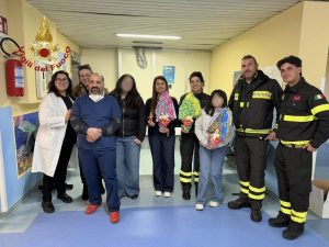 Nello specifico, i reparti visitati dai soccorritori sono stati quelli di Endocrinologia Pediatrica e Chirurgia Pediatrica. L’arrivo a sorpresa dei Vigili del fuoco, accolti con curiosità ed entusiasmo, ha trasformato la routine ospedaliera in un momento di festa. Durante la visita, il personale in divisa ha consegnato uova di Pasqua, quadernoni e bolle di sapone, scambiando sorrisi con i piccoli pazienti che hanno voluto conoscere da vicino i loro “eroi” del soccorso.